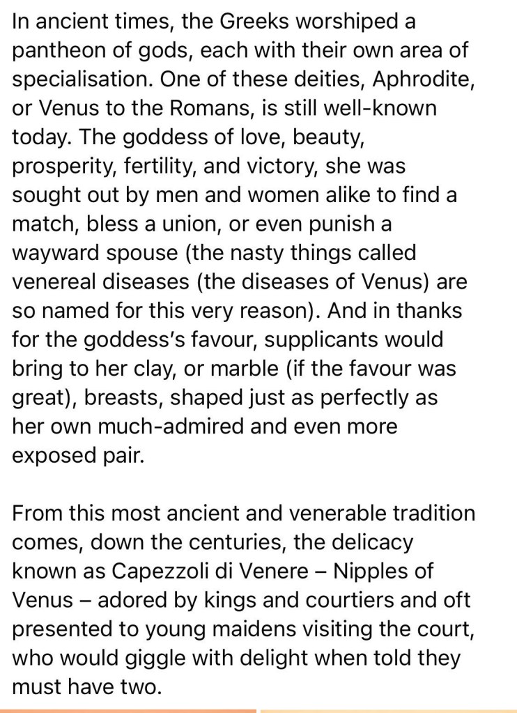 5)Aphrodite, Mozart, and ancient ex-voto offerings: recipe Capezzoli di Venere